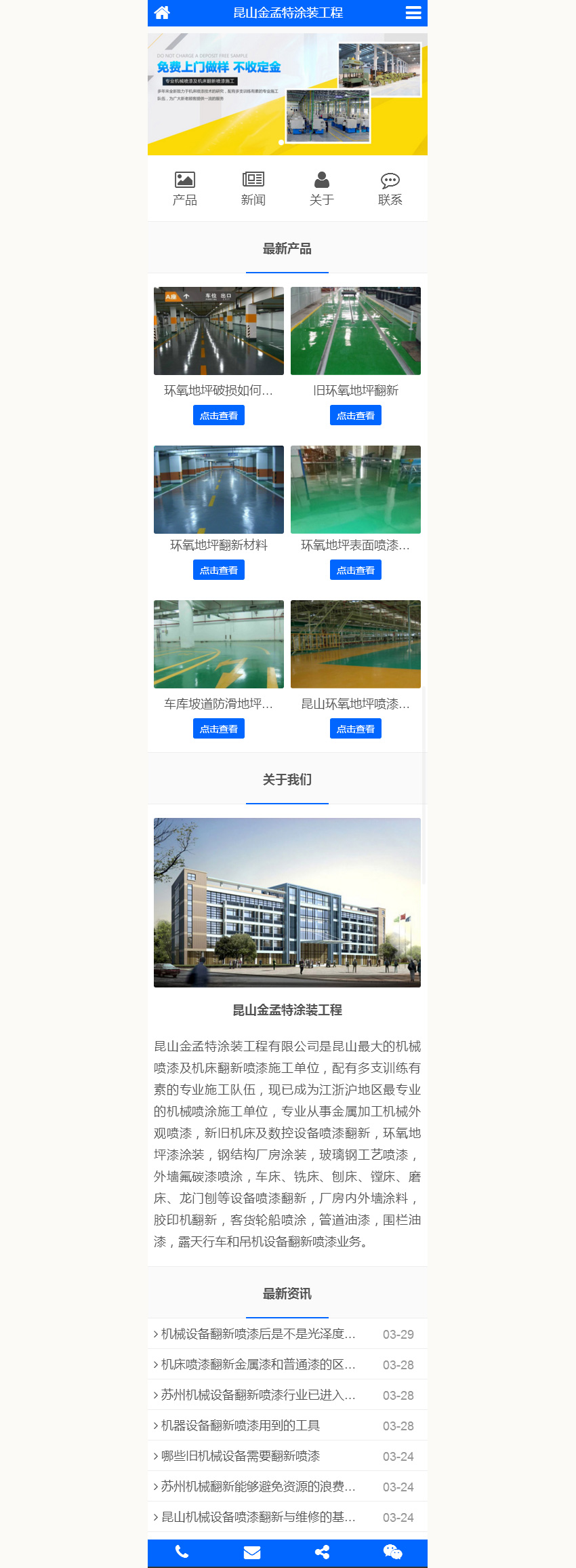 昆山金孟特涂裝工程有限公司 ——是昆山最大的機械噴漆及機床翻新噴漆施工單位(昆山金孟成立于2005年經(jīng)過多年的發(fā)展壯大,配有多支訓(xùn)練有素的專業(yè)施工隊伍,現(xiàn)已成為江浙滬地區(qū)最專業(yè)的機械噴涂施工單位,多年來全新致力于機床噴漆技術(shù)的研究,為廣大新老顧客提供一流的服務(wù),我們是一家專業(yè)從事金屬加工機械外觀噴漆,新舊機床及數(shù)控設(shè)備噴漆翻新,環(huán)氧地坪漆涂裝,鋼結(jié)構(gòu)廠房涂裝,玻璃鋼工藝噴漆,外墻氟碳漆噴涂,車床、銑床、刨床、鏜床、磨床、龍門刨等設(shè)備噴漆翻新,廠房內(nèi)外墻涂料,膠印機翻新,客貨輪船噴涂,管道油漆,圍欄油漆,露天行車和吊機設(shè)備翻新噴漆業(yè)務(wù)。