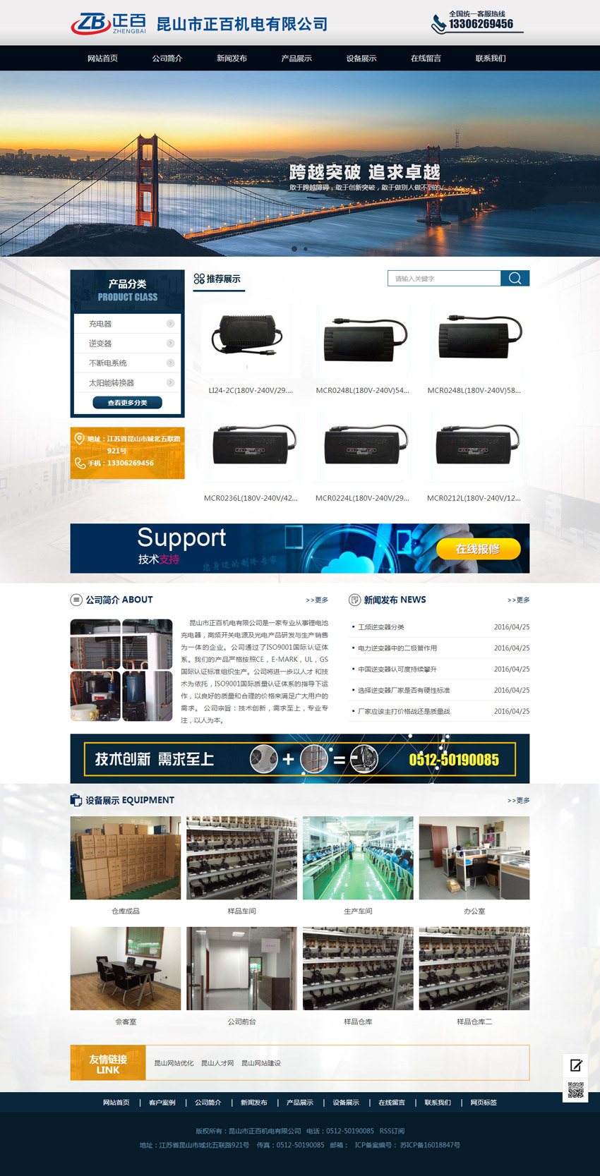 昆山市正百機電有限公司是一家專業(yè)從事鋰電池充電器,高頻開關(guān)電源及光電產(chǎn)品研發(fā)與生產(chǎn)銷售為一體的企業(yè)。公司通過了ISO9001國際認證體系。我們的產(chǎn)品嚴格按照CE,E-MARK,UL,GS國際認證標準組織生產(chǎn)。公司將進一步以人才 和技術(shù)為依托,ISO9001國際質(zhì)量認證體系的指導下運作,以良好的質(zhì)量和合理的價格來滿足廣大用戶的需求。