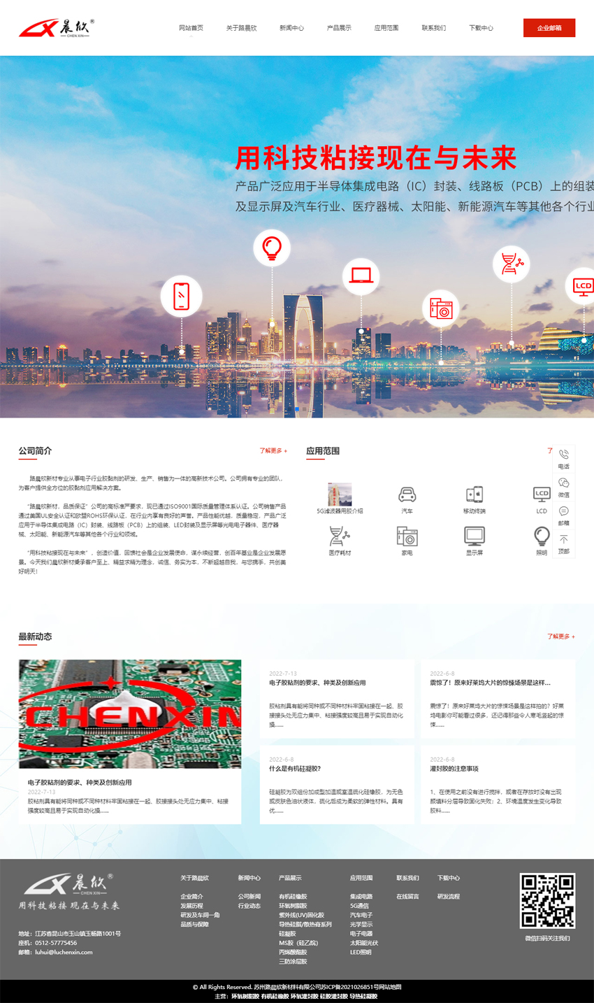 蘇州路晨欣新材料有限公司是專業(yè)從事電子行業(yè)膠黏劑的研發(fā)、生產(chǎn)、銷售為一體的高新技術(shù)公司。公司擁有專業(yè)的銷售團(tuán)隊,為客戶提供全方位的膠黏劑應(yīng)用解決方案。