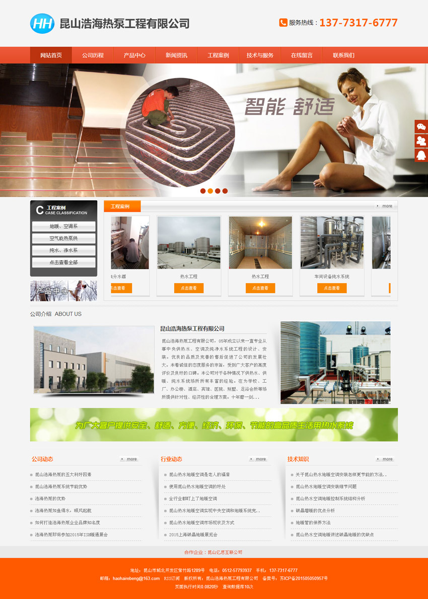 昆山浩海熱泵工程有限公司,05年成立以來一直專業(yè)從事中央供熱水、空調(diào)及純凈水系統(tǒng)工程的設(shè)計、安裝。優(yōu)良的品質(zhì)及完善的售后促進了公司的發(fā)展壯大。本著誠信的態(tài)度服務(wù)的宗旨,受到廣大客戶的高度評價及良好的口碑。