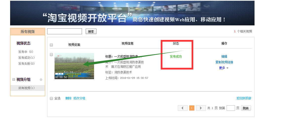 發(fā)布成功后 點擊上圖中的圖片 看到播放;